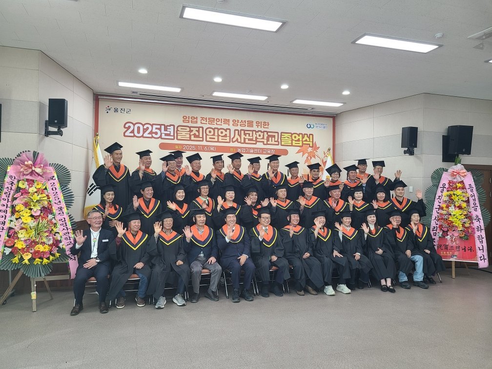 [한국Q뉴스] 울진군은 지난 11월 6일 농업기술센터 3층 교육장에서 ‘2025년 울진임업사관학교 졸업식’을 개최하고 7주간의 교육과정을 마친 37명의 교육생에게 졸업장과 모범상, 개근상 등을 수여했다.