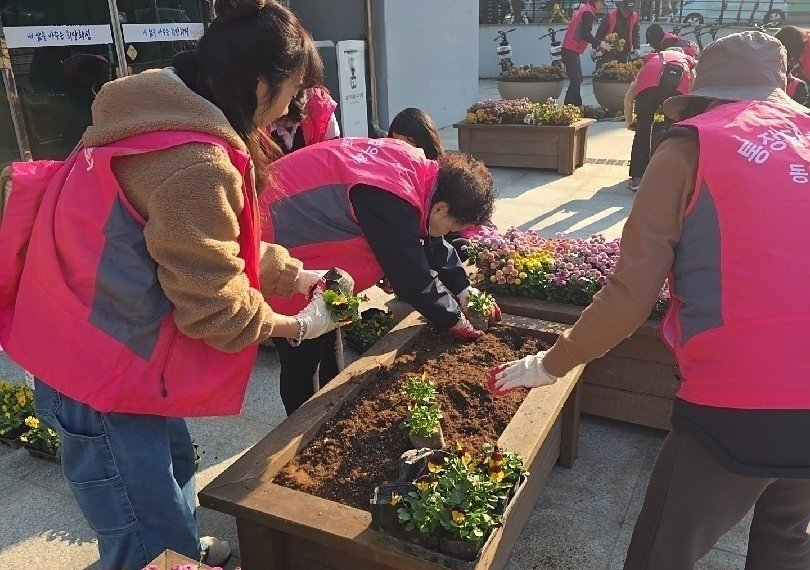 이날 식재된 비올라는 겨울철 저온 조건에서도 개화 품질이 우수하고 색상이 선명하게 유지되는 것이 특징으로 계절 변화에도 안정적인 경관미를 제공할 것으로 기대된다.