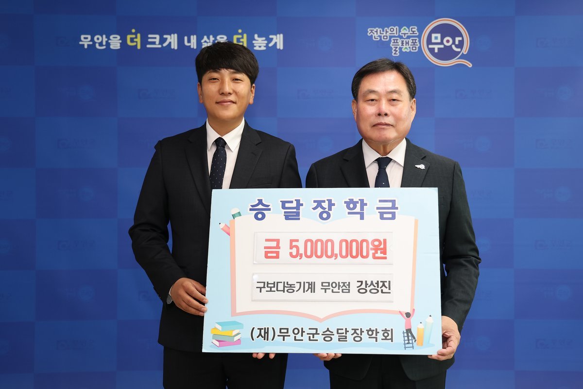 [한국Q뉴스] 전남 무안군은 11일 구보다농기계 무안대리점으로부터 지역 우수 인재 양성을 위해 무안군승달장학회에 장학금 5백만원을 기탁받았다.