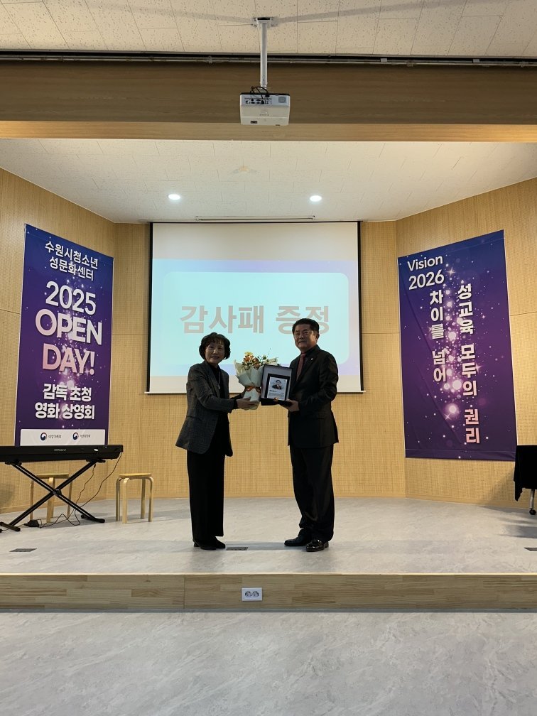 이번 감사패는 정 의원이 청소년 인권 증진과 성교육 환경 개선을 위해현장의 목소리에 귀 기울이며 실질적인 제도 개선을 추진한 노력을 높이 평가받은 결과다.
