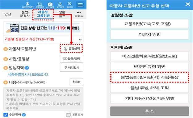 국민 불편 민원이 많은 소음기 불법개조, 등화장치 임의 변경 등 불법 튜닝을 비롯하여, 번호판 미부착·훼손·가림 등 불법 운행 행태에 대한 단속을 강화한다. ㅇ 상반기 적발 건수가 크게 증가한 후부 반사지 미부착 등 안전기준 위반 차량과 도시 미관을 해치고 안전사고를 유발하는 무단방치 자동차에 대해서도 집중적으로 단속한다. ☐ 아울러, 상반기 번호판 영치 건수의 대부분을 차지한 검사미필, 의무보험 미가입, 지방세 체납 차량 등의 적발을 원활히 하기 위해, 관계기관 정보시스템 연계 현황을 점검하고 이를 단속에 적극 활용할 계획이다.
