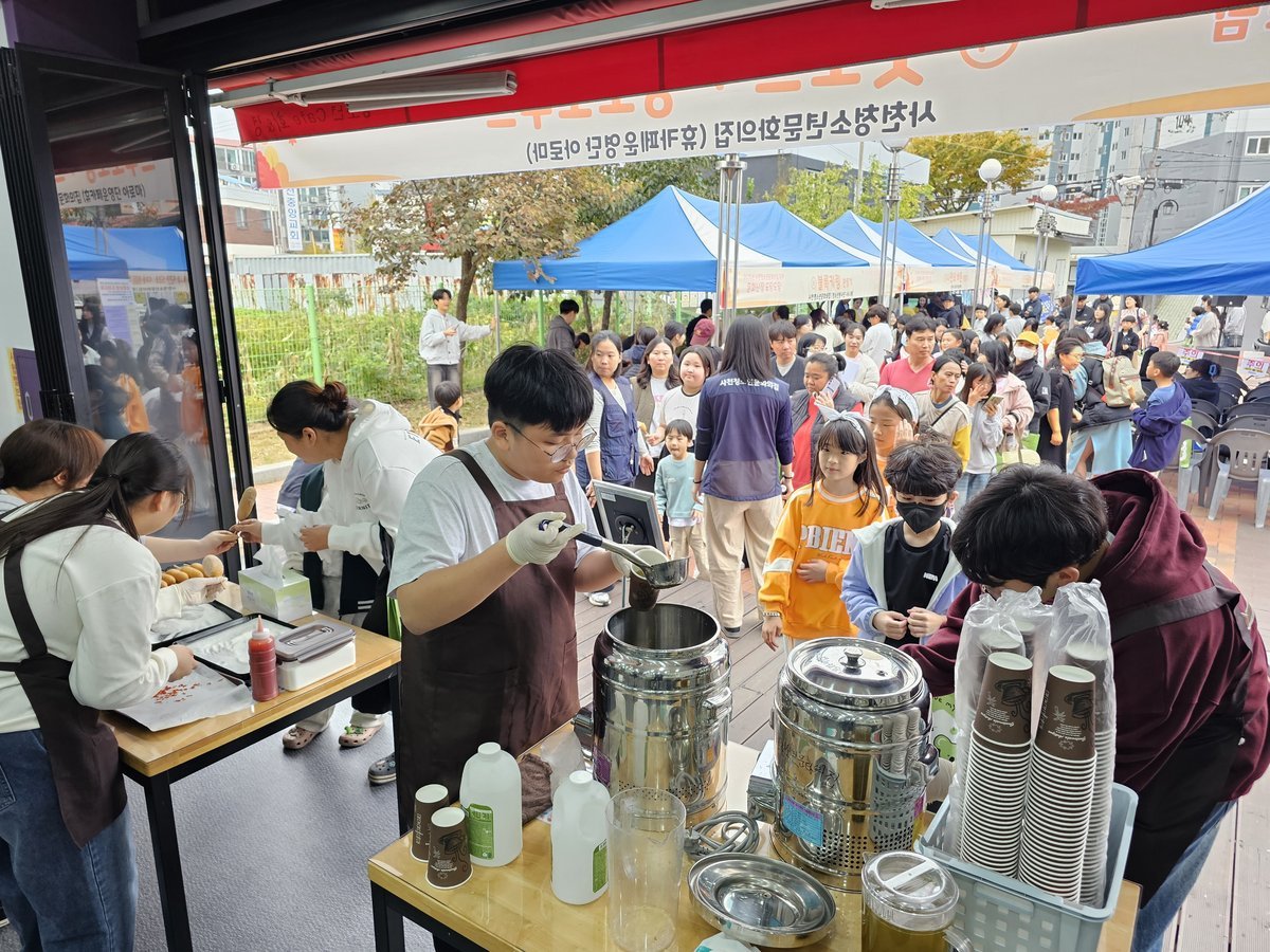 오후 2시부터 시작된 부스마당에서는 블록 키링, 진동 로봇, 아트컵 만들기 등 창의적인 체험 활동과 함께 아이스크림 쌓기 게임으로 즐거움을 더했으며 핫도그, 청포도 주스 등 다양한 먹거리도 제공되어 참가자들의 오감을 만족시켰다.