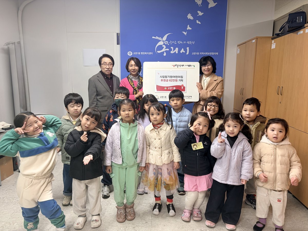 [한국Q뉴스] 구리시는 시립딸기원어린이집이 아이들과 학부모, 교직원이 함께한 따뜻한 나눔 실천으로 11월 12일 교문1동 행정복지센터 에 성금 62만원을 전달했다고 밝혔다.