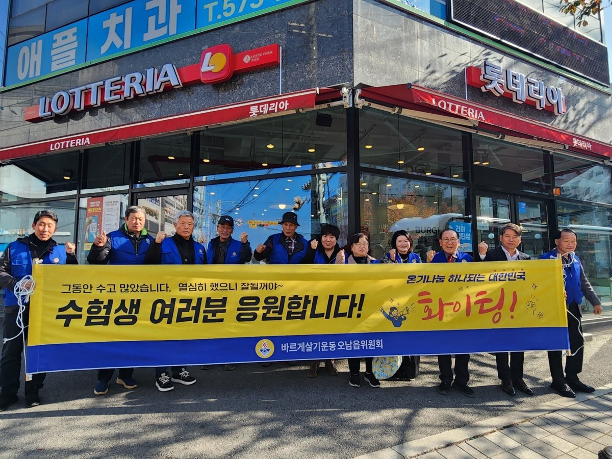 [한국Q뉴스] 남양주시는 11일 오남읍 바르게살기운동협의회가 2026학년도 대학수학능력시험을 앞두고 오남읍 주요 도로변에서 ‘수험생 응원 캠페인’을 전개했다고 밝혔다.