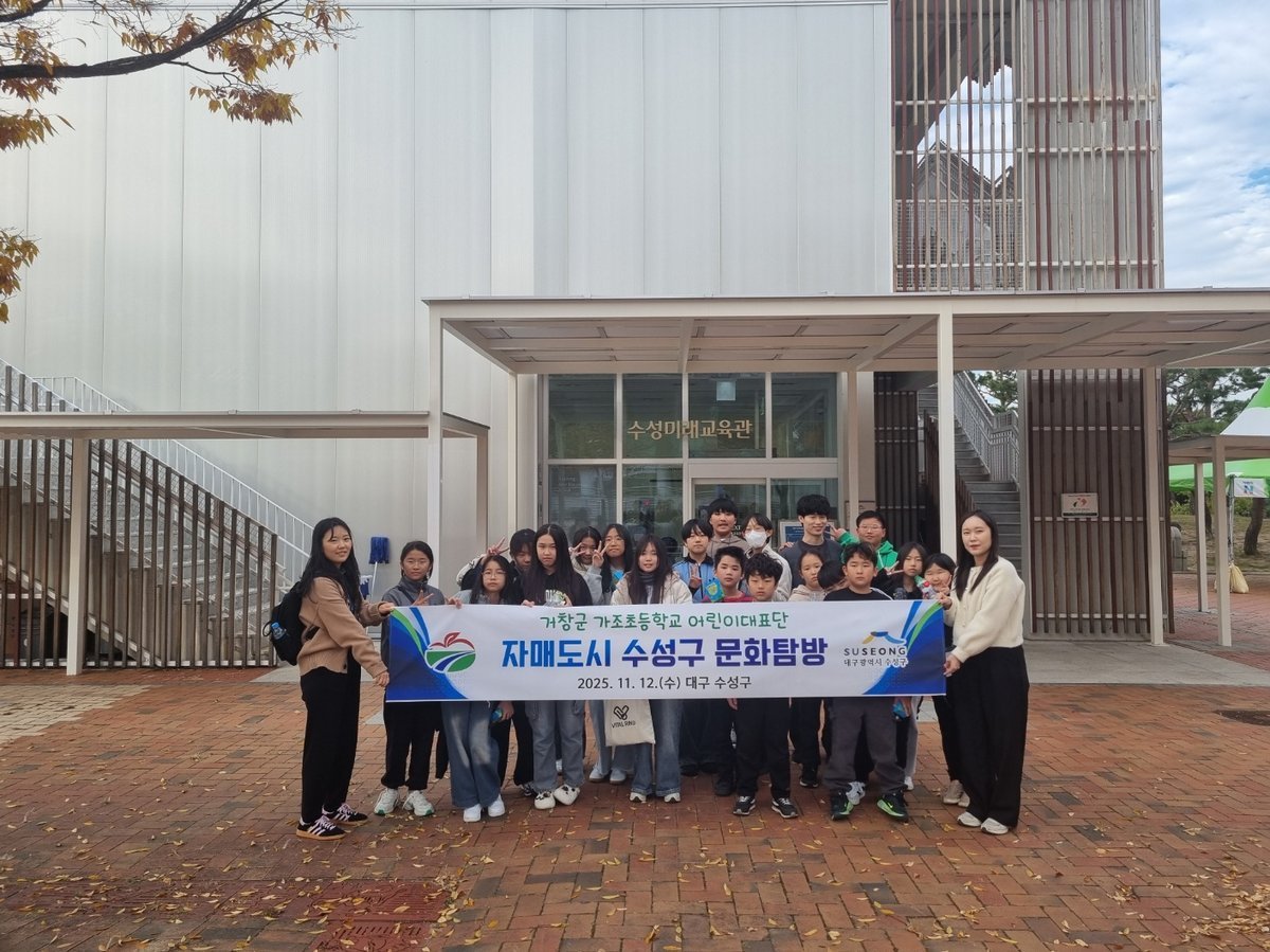 [한국Q뉴스] 거창군은 지난 12일 가조초등학교 학생들로 구성된 거창군 어린이대표단 26명이 자매도시 수성구를 방문해 다양한 교류와 체험의 시간을 가졌다고 밝혔다.