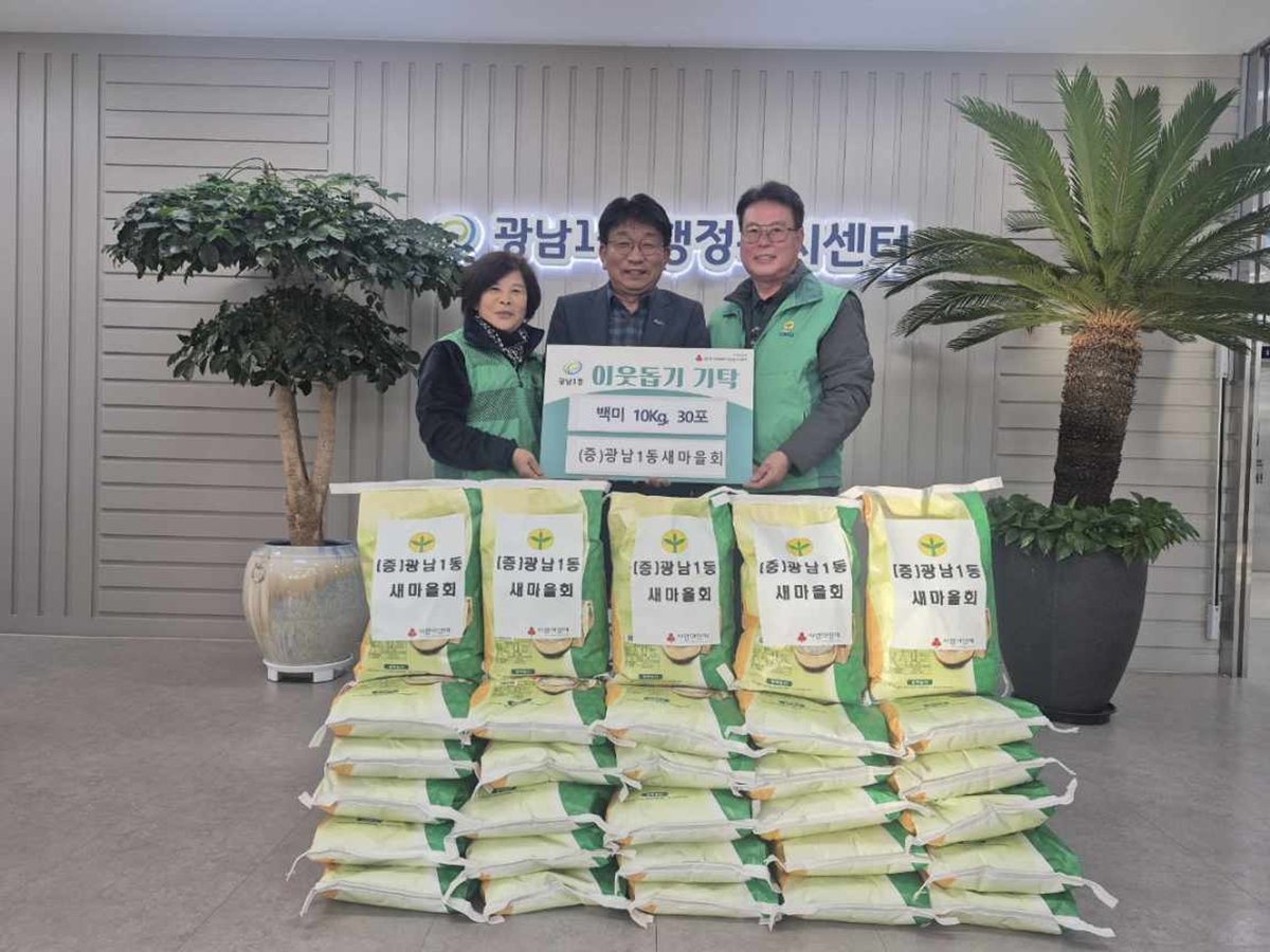[한국Q뉴스] 광주시 광남1동 새마을회는 지난 12일 광남1동 행정복지센터를 방문해 지역 내 저소득층에게 전달해 달라며 백미 30포를 기탁했다.
