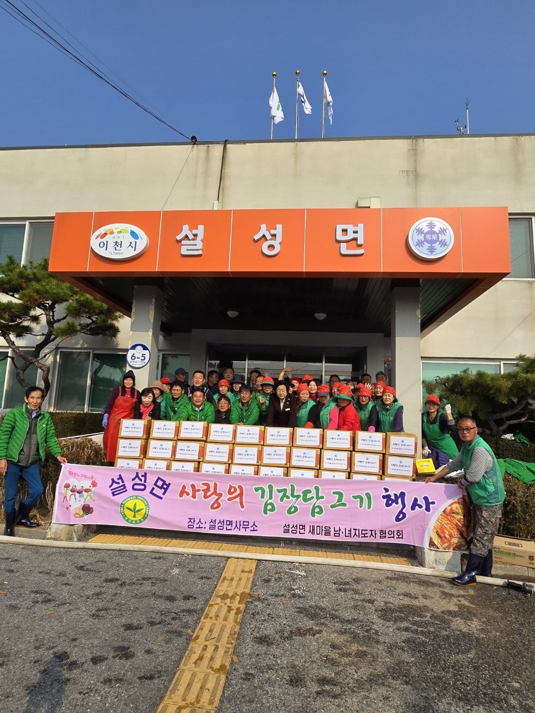 [한국Q뉴스] 새마을설성면남녀협의회는 11월 13일 설성면행정복지센터 주차장에서 설성면 관내 어려운 가정을 위한 ‘사랑의 김장 나누기’봉사활동을 펼쳤다.