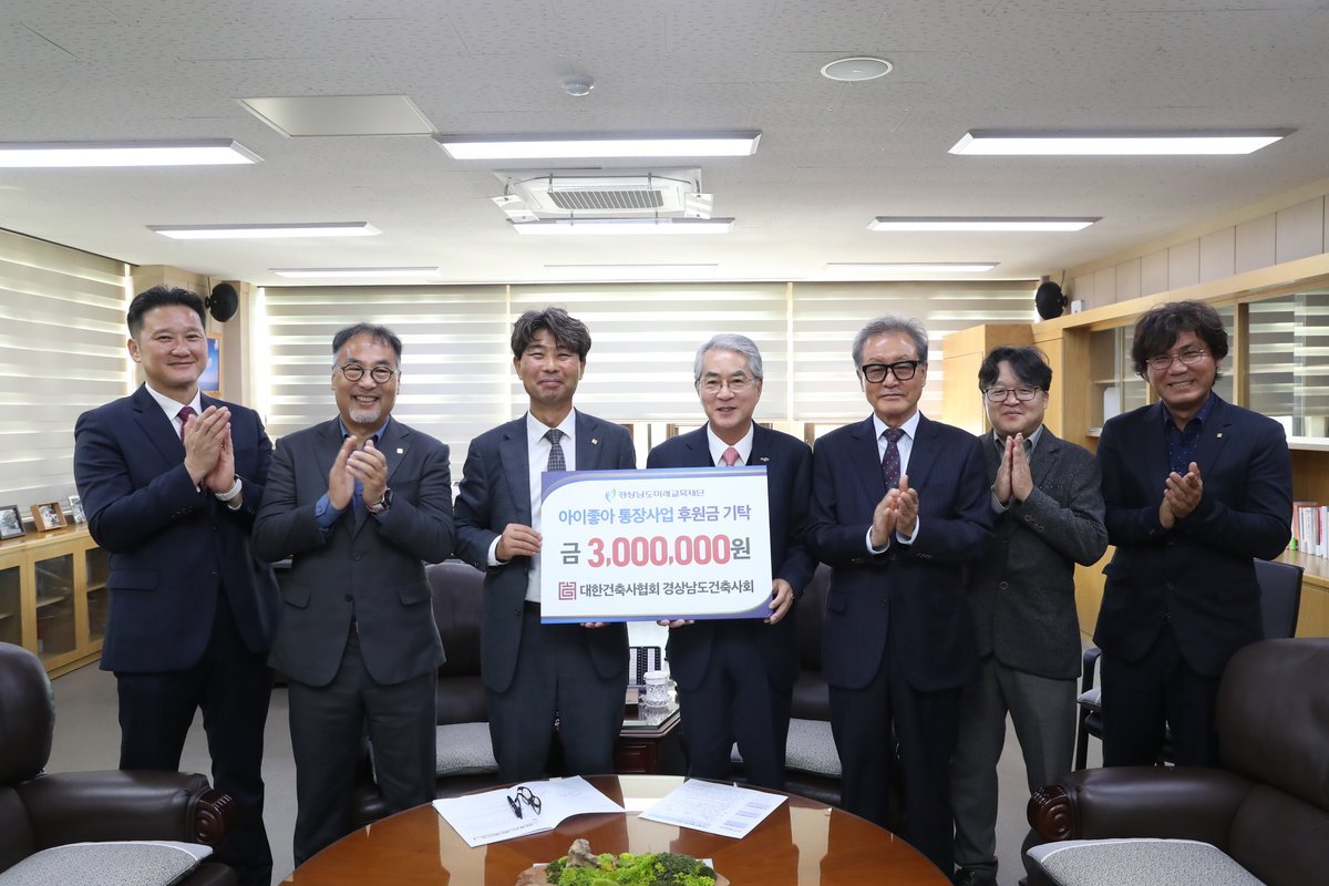 [한국Q뉴스] 경상남도건축사회는 경남교육감 집무실을 찾아 경상남도미래교육재단에 ‘아이좋아 통장사업’후원금 300만 원을 기탁하며 아이들의 꿈과 성장을 응원했다.