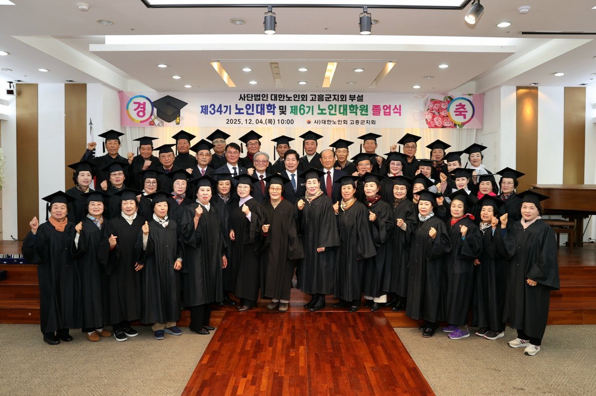 [한국Q뉴스] 고흥군은 4일 고흥 하나웨딩홀에서 대한노인회 고흥군지회 부설 제34기 노인대학 및 제6기 노인대학원 졸업식을 개최하고, 평생 배움을 실천해 온 어르신들의 한 해 동안의 노력과 열정을 축하하는 자리를 가졌다.