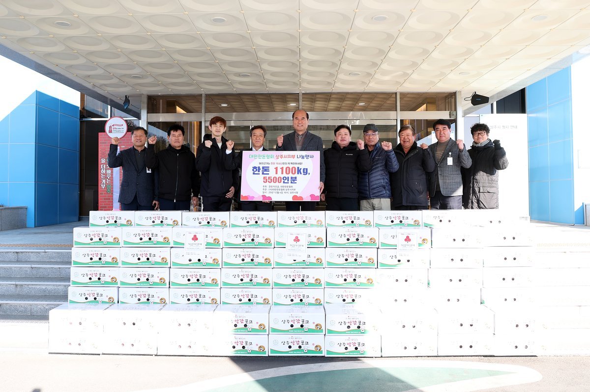 [한국Q뉴스] 사)대한한돈협회 상주시지부는 12월 4일 돼지고기 1100kg을 상주시에 기탁했다.