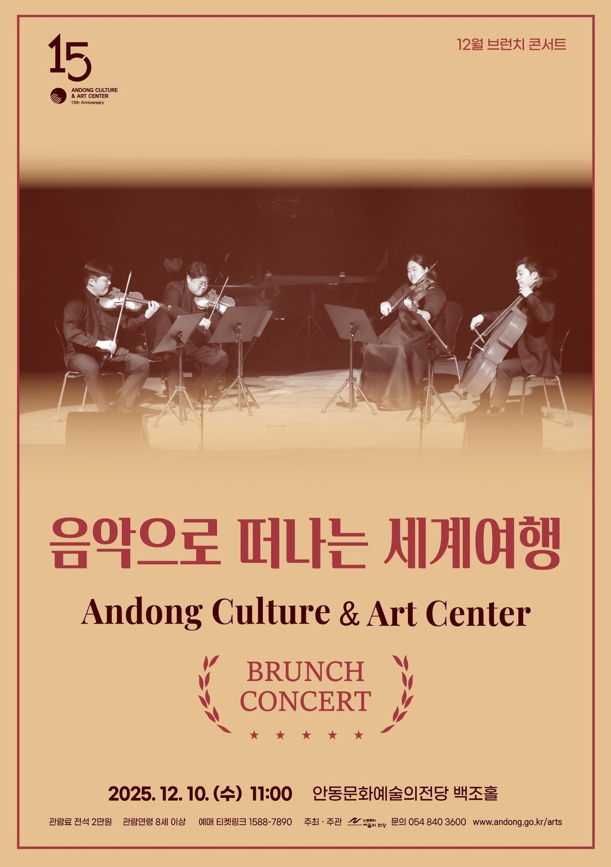 [한국Q뉴스] 안동문화예술의전당은 매월 둘째 주 수요일, 바쁜 일상 속 잠시 여유를 찾고자 하는 클래식 애호가들을 위한 브런치 콘서트를 정기적으로 운영하고 있다.