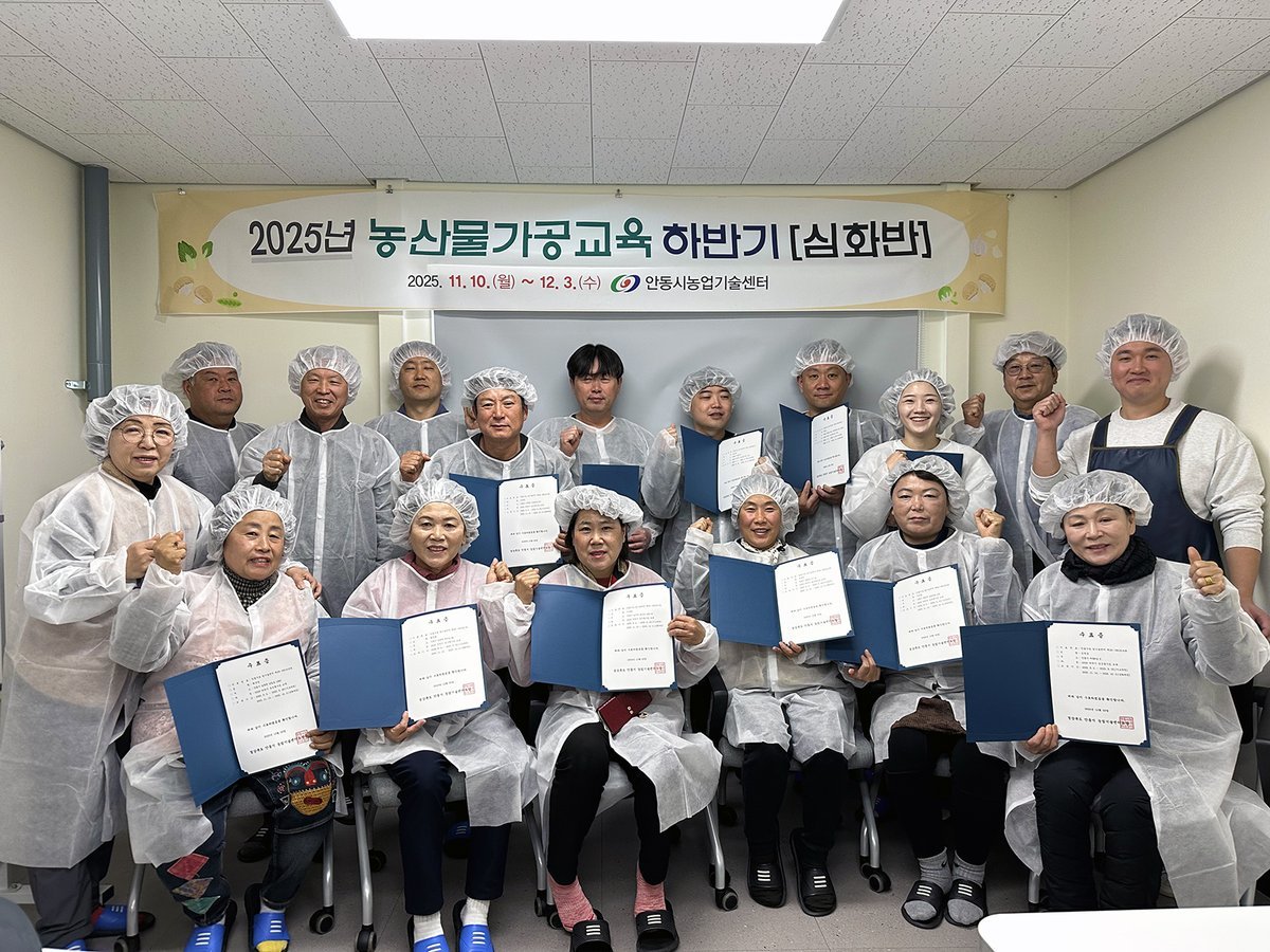 [한국Q뉴스] 안동시농업기술센터가 지난 9월 2일부터 12월 3일까지 추진한 「2025년 하반기 농산물 가공 교육」이 성황리에 마무리됐다.
