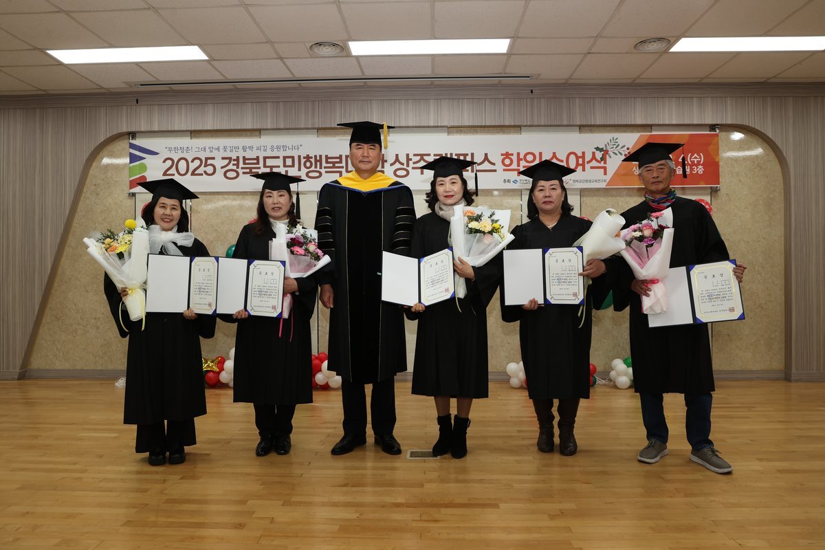 [한국Q뉴스] 상주시는 12월 4일, 상주시 평생학습관에서 2025년 경북도민행복대학 상주캠퍼스 명예학위 수여식을 개최했다.