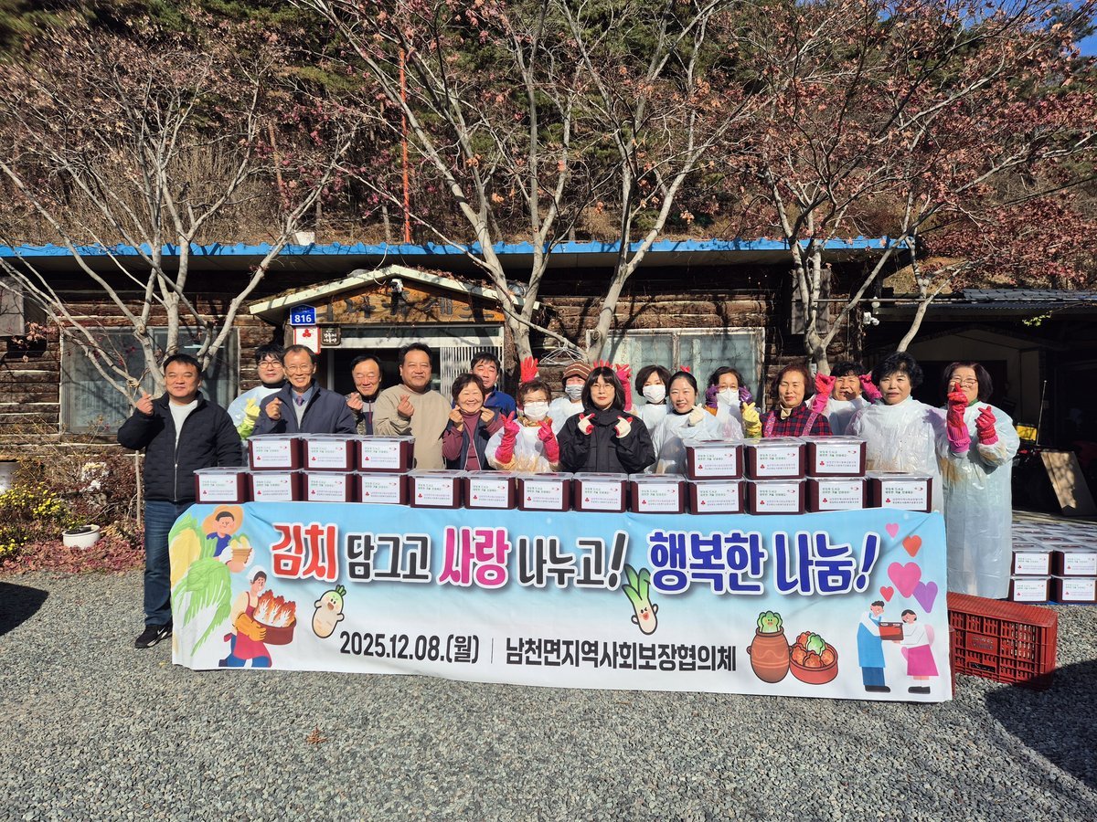 장태향 남천면장은 “쌀쌀한 날씨에 김장 담그기 준비부터 버무려 포장하는 작업까지 애써 주신 협의체 위원님들께 감사를 전하며, 앞으로도 민관협력을 통해 따뜻한 나눔과 배려가 넘치는 남천면을 만들어 가겠다”고 전했다.