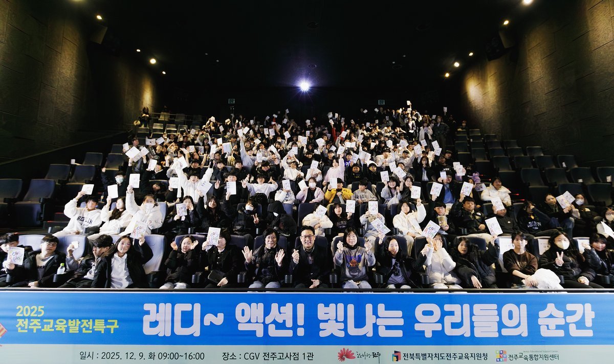 [한국Q뉴스] 전주교육통합지원센터는 9일 CGV 전주고사점에서 2025 교육발전특구 K-영화인재 진로체험 영화 상영회인 ‘레디~ 액션! 빛나는 우리들의 순간’을 개최했다.