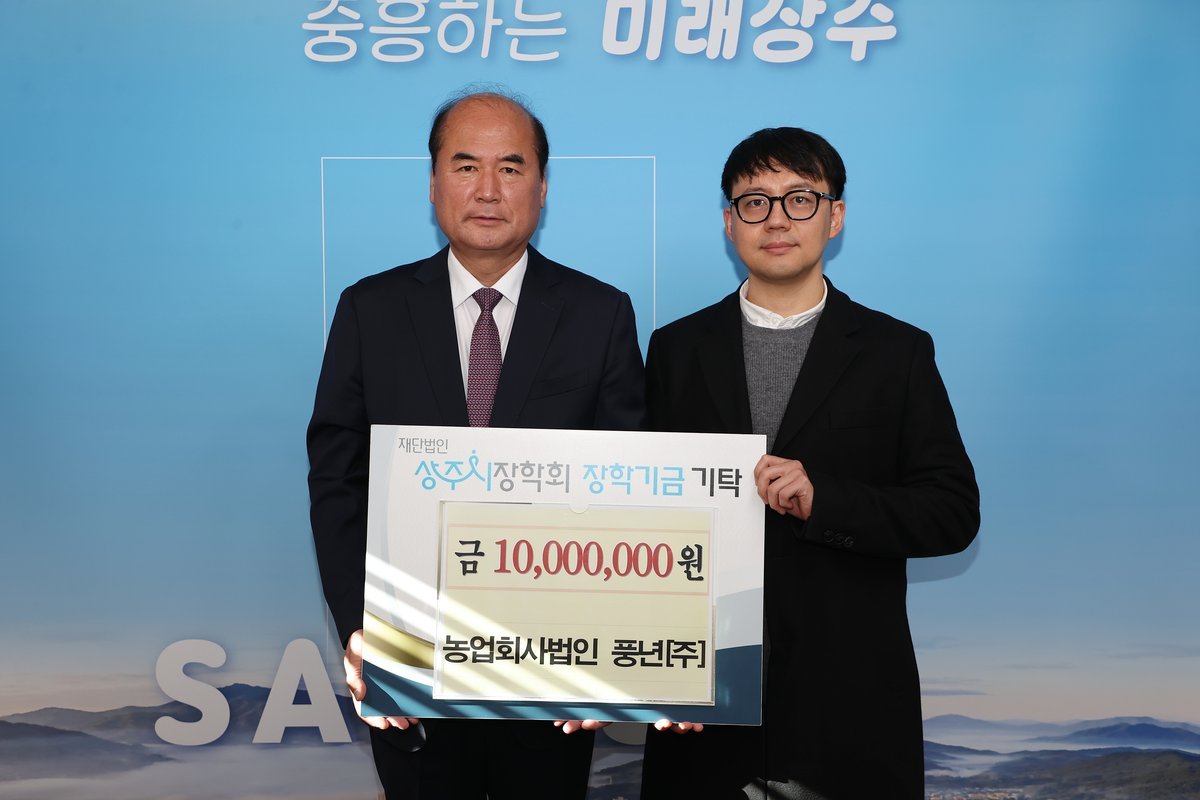 [한국Q뉴스] 농업회사법인 풍년에서는 12월 9일 상주시청을 방문하여 인재 육성과 교육환경 개선을 위해 상주시장학회에 장학금 1000만 원을 기탁했다.
