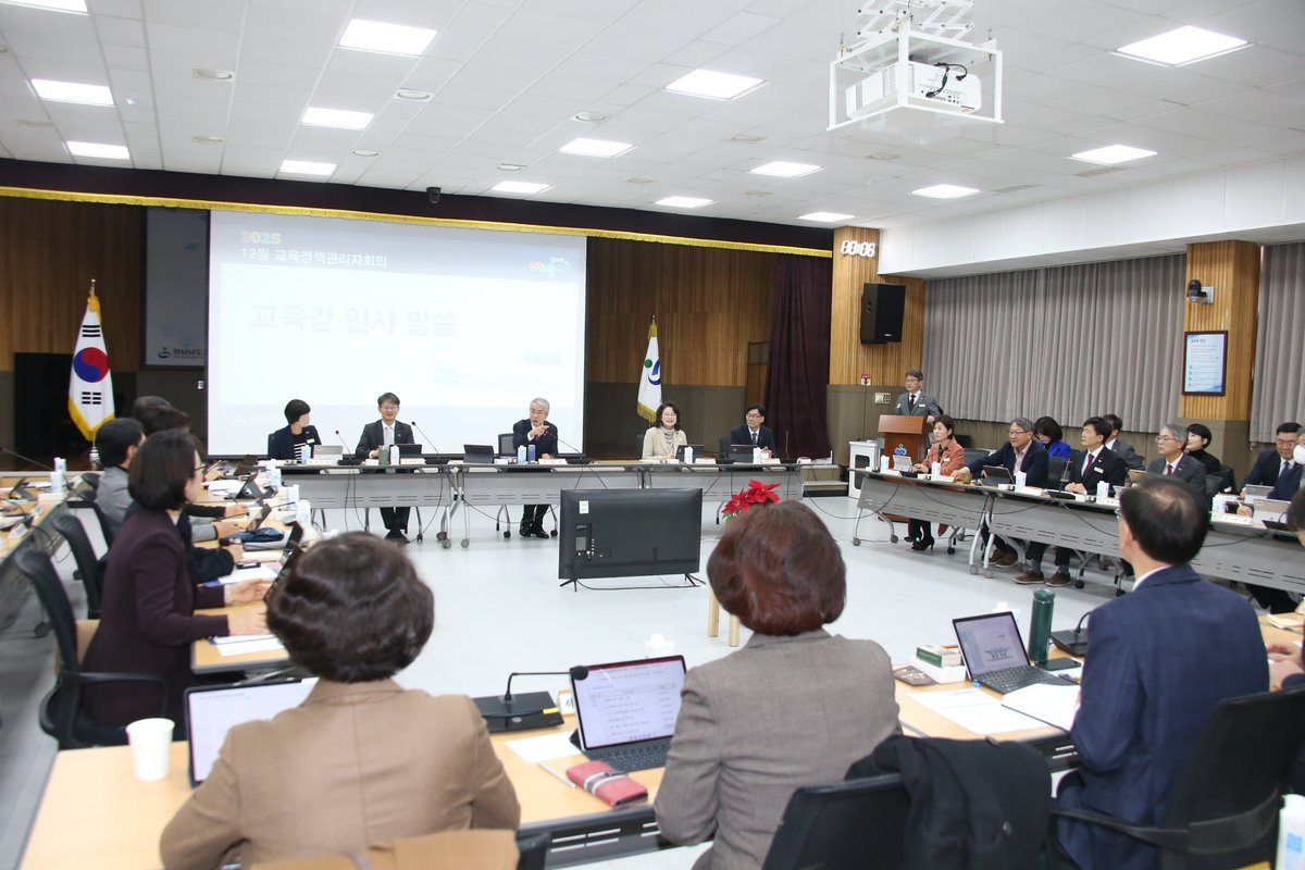 박종훈 교육감은 “오늘 회의는 경남교육 가족 모두가 함께 만들어온 한 해를 진솔하게 돌아보는 자리”라며 “성과뿐 아니라 미흡했던 부분도 공유하며 더 나은 경남교육을 위해 개선 방향을 함께 찾아가겠다.”라고 밝혔다.
