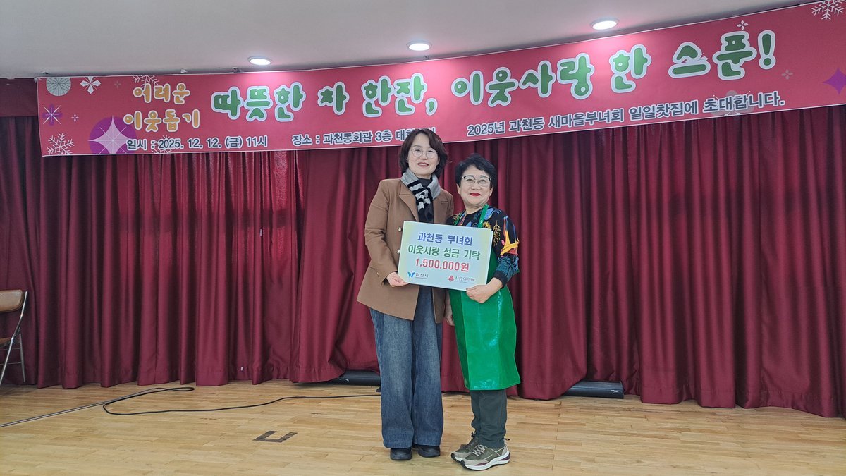이번 성금은 과천동 새마을부녀회가 주관한 ‘과천동 일일 찻집’행사 수익금으로 마련됐다.