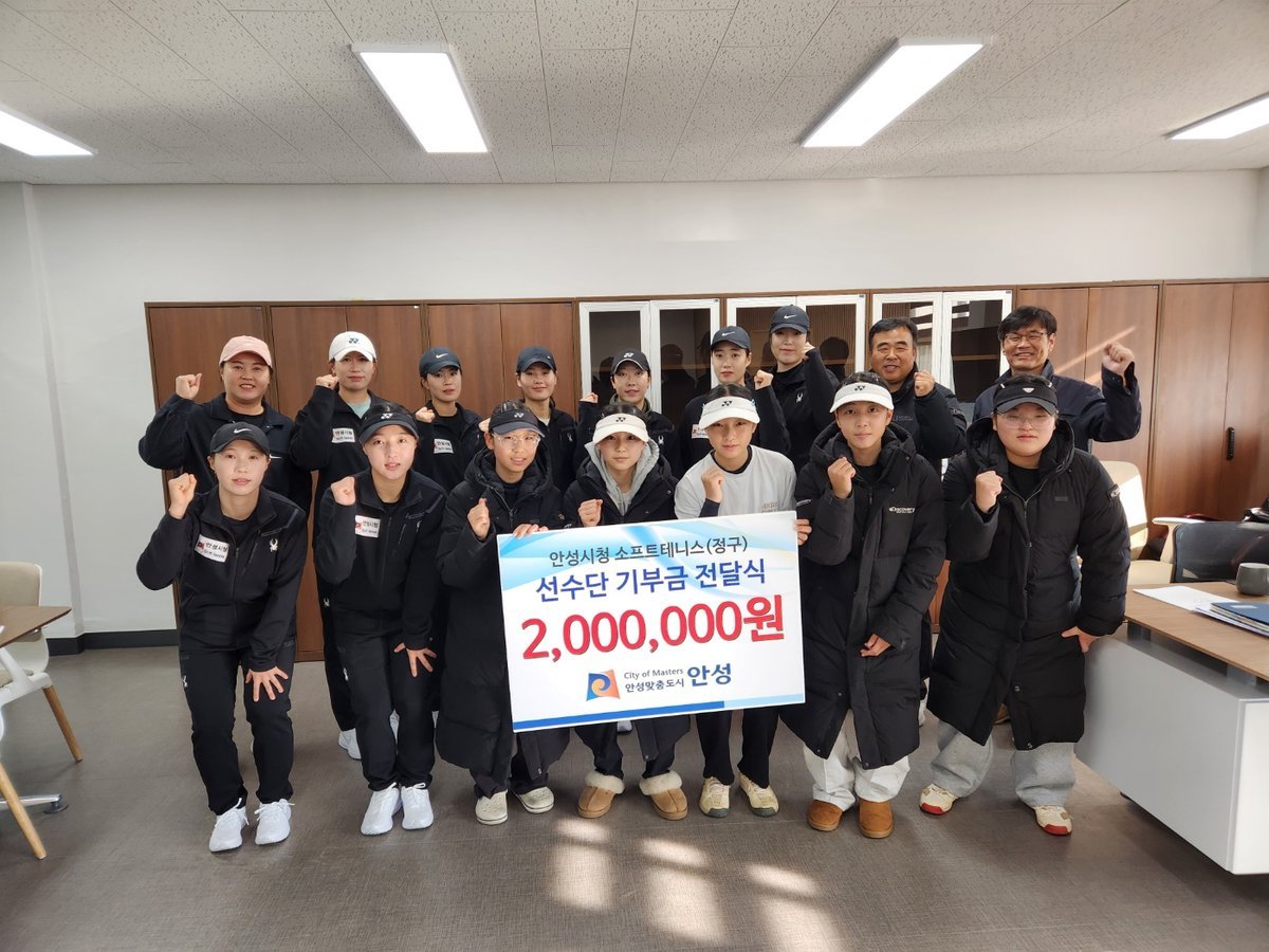 선수단은 지난 12월 9일 안성중학교와 안성여자중학교 소프트테니스부에 각각 200만 원씩 총 400만 원을 기부해 미래의 소프트테니스 꿈나무들이 성장할 수 있도록 응원했다. 이어 12월 12일에는 안성시민장학회에 200만 원을 전달하며 지역 인재 육성을 위한 장학사업에도 힘을 보탰다.