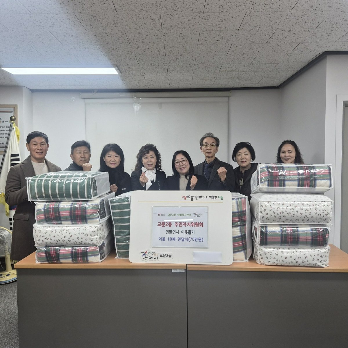 전미경 교문2동주민자치위원장은 “전달한 이불세트가 추운 겨울을 보내는 데 작은 보탬이 되길 바란다.”라며, “앞으로도 지역사회와 함께하는 나눔과 봉사를 꾸준히 이어가겠다.”라고 말했다.