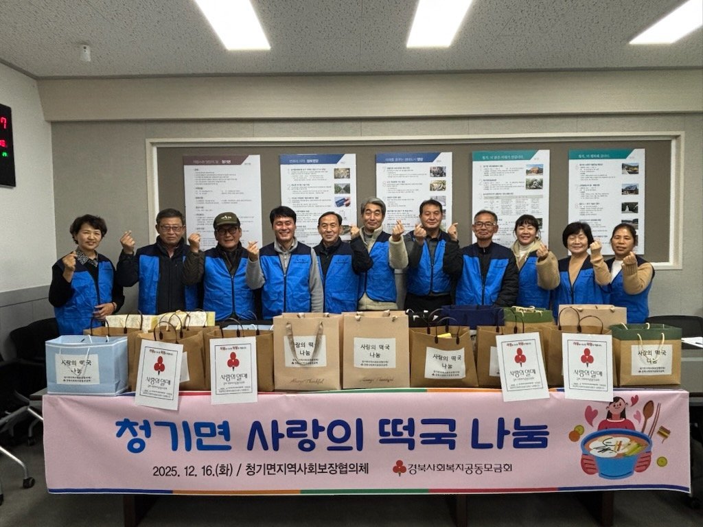 이번 행사는 경북사회복지공동모금회 ‘함께모아행복금고 연합모금사업’청기면 지역특화사업으로 관내 식생활 취약계층의 사회적 고립감을 예방하고 따뜻한 식사를 지원하기 위해 시행되었으며, 협의체 위원들이 떡국떡 140kg와 사골곰탕을 직접 전달하며 연말연시를 훈훈하게 만들었다.