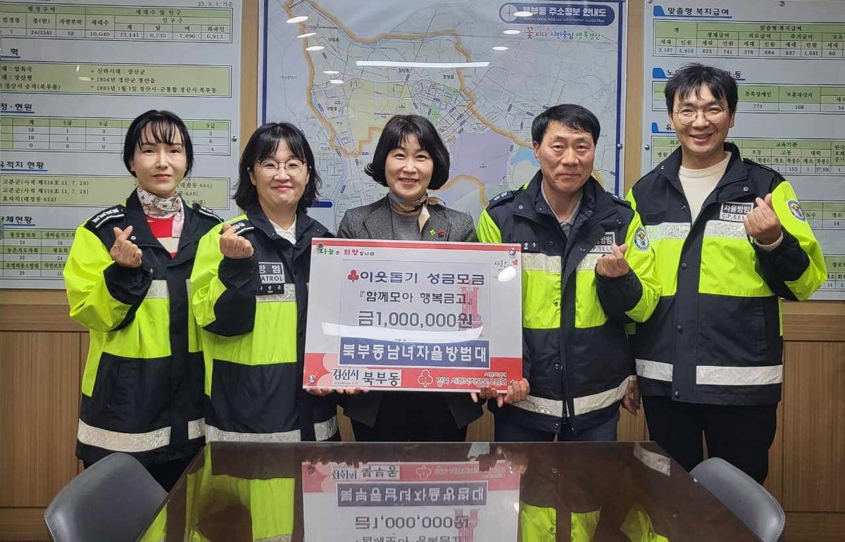 김현주 북부동장은“나눔 문화 확산을 위한 행렬에 동참해 주신 자율방범대원과 체육회 회원분들께 감사의 말씀을 드리며 전달해 주신 따뜻한 관심과 사랑이 담긴 기부금은 어려운 이웃들에게 소중히 전달하겠다”라고 답했다.