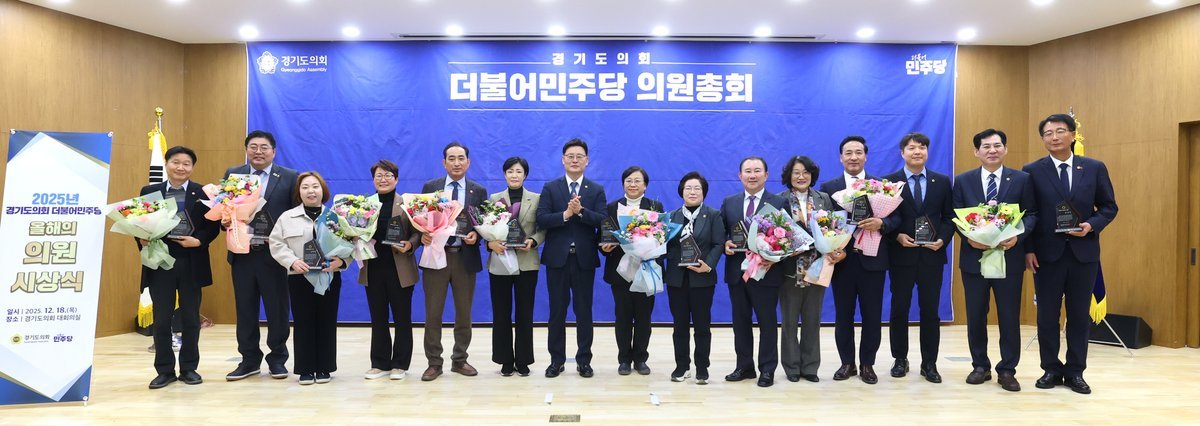 [한국Q뉴스] 경기도의회 더불어민주당은 18일 경기도의회 대회의실에서 열린 의원총회 직후 ‘2025 더불어민주당 올해의 의원상’시상식을 개최했다.