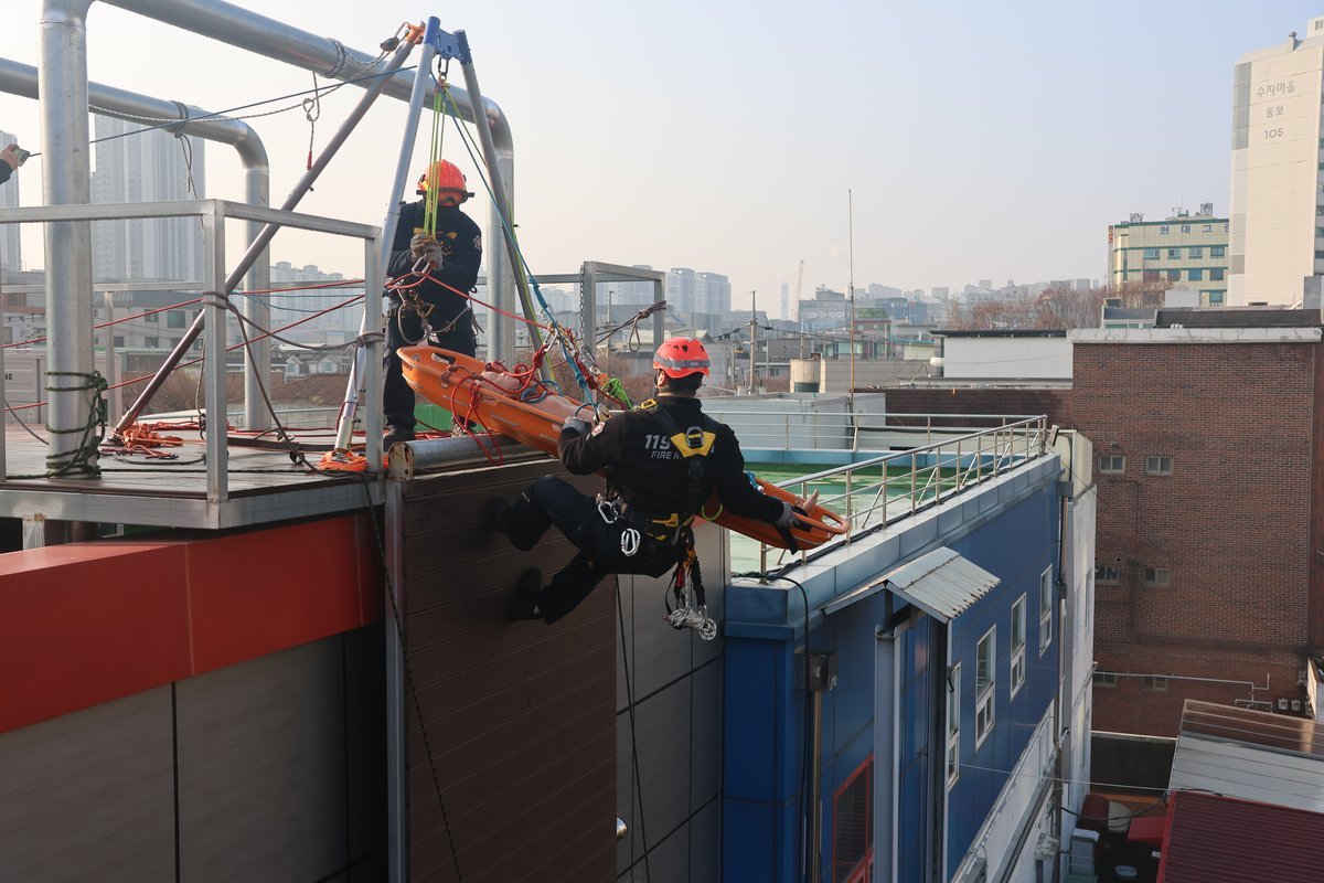 훈련에는 구조대장 포함 19명의 구조대원이 참여하며 △위험한 구조 현장에서 구조대원의 안전을 지키기 위한 대응 절차 △로프를 통한 하강·탐색 △구조대상자 인양 및 운반 등 실전 중심의 구조기법을 집중 숙달한다.