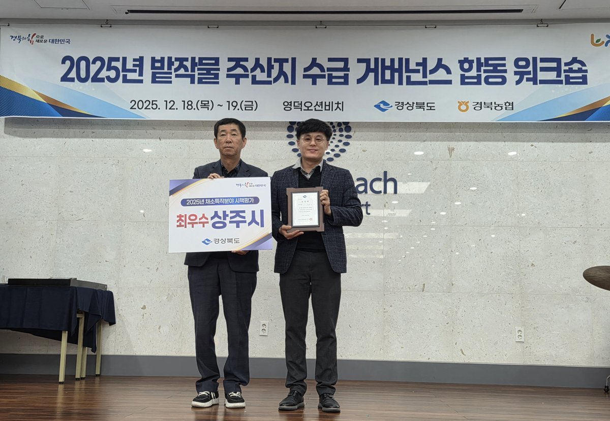 [한국Q뉴스] 상주시는 지난 18일 경상북도에서 실시한‘2025년 채소특작분야 시책평가’에서 6년 연속 최우수상을 수상하는 영예를 안았다.