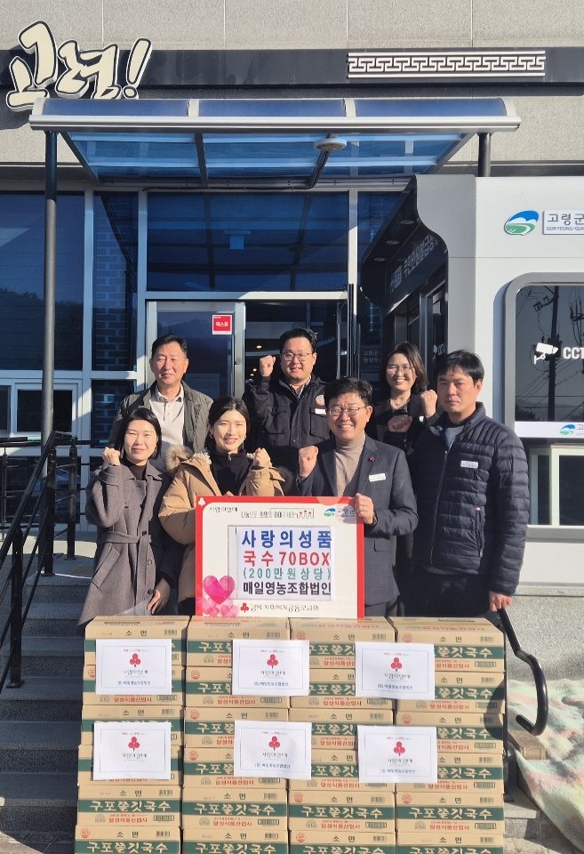 [한국Q뉴스] 매일영농조합법인은 12월 18일 개진면사무소를 방문해 독거노인과 지역 경로당에 국수 70박스를 기탁하며, 지역 이웃을 위한 따뜻한 나눔을 실천했다.