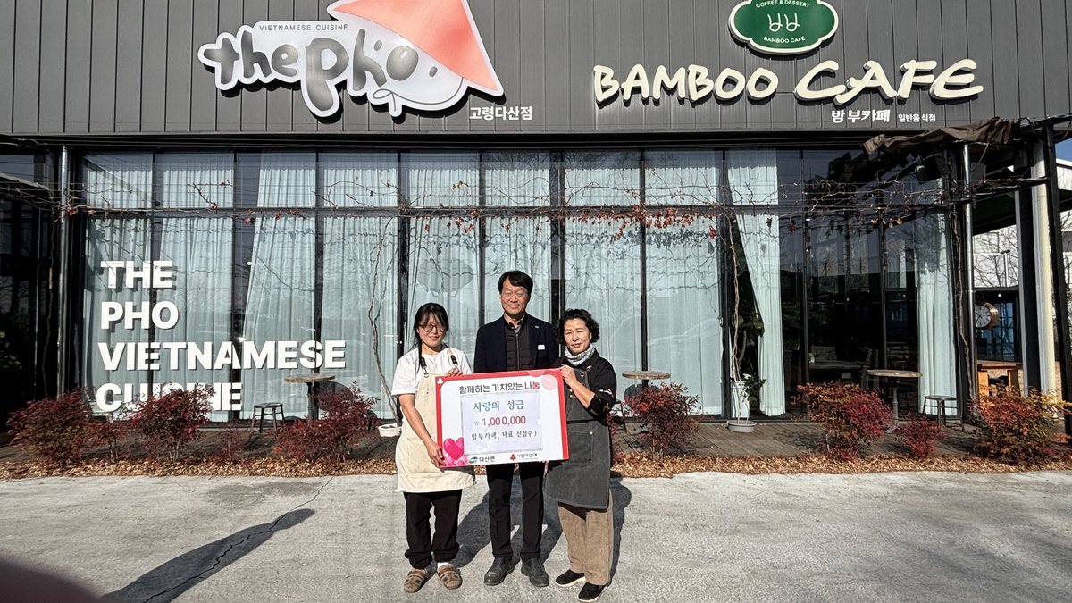 [한국Q뉴스] 다산면 좌학리에 위치한 밤부카페에서 「희망2026나눔캠페인」에 동참하고자 12월 18일 사랑의 성금 100만원을 기탁하였다.