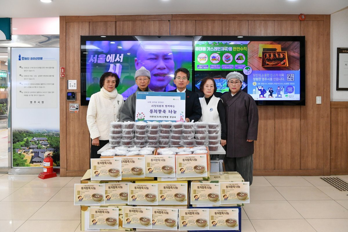 [한국Q뉴스] 영주시는 지난 22일 대한불교선학원 관음사가 동짓날을 맞아 시청 1층 로비에서 ‘2025년 동지 팥죽 나눔행사’를 진행했다고 밝혔다.