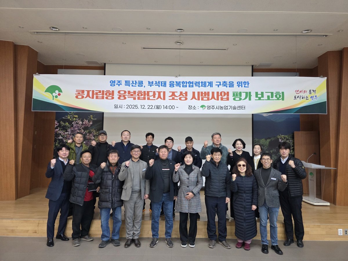 [한국Q뉴스] 영주시는 지난 22일, 영주시농업기술센터 대강당 에서 ‘2025년도 부석태 콩자립형 융복합단지 조성 시범사업 평가보고회 ’를 개최했다.