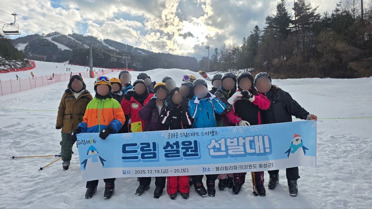 [한국Q뉴스] 군위군 드림스타트는 지난 2025년 12월 19일부터 20일까지 1박 2일간, 강원도 횡성군에 위치한 웰리힐리파크에서 드림스타트 아동들을 대상으로 「드림 설원 선발대」스키캠프를 운영했다.