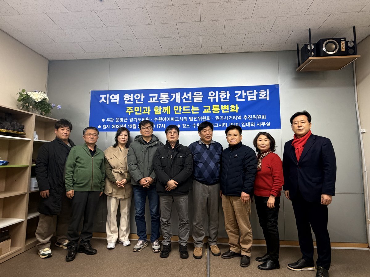 [한국Q뉴스] 경기도의회 건설교통위원회 문병근 의원이 22일 수원 권 선지구 주민들과 간담회를 열고 경기남부광역철도 제5차 국가철도망 반영과 권곡사거리역, 세류역 신설, 똑버스 노선 개선 등 지역 교통 현안 해결을 위해 간담회에 참석하였다.