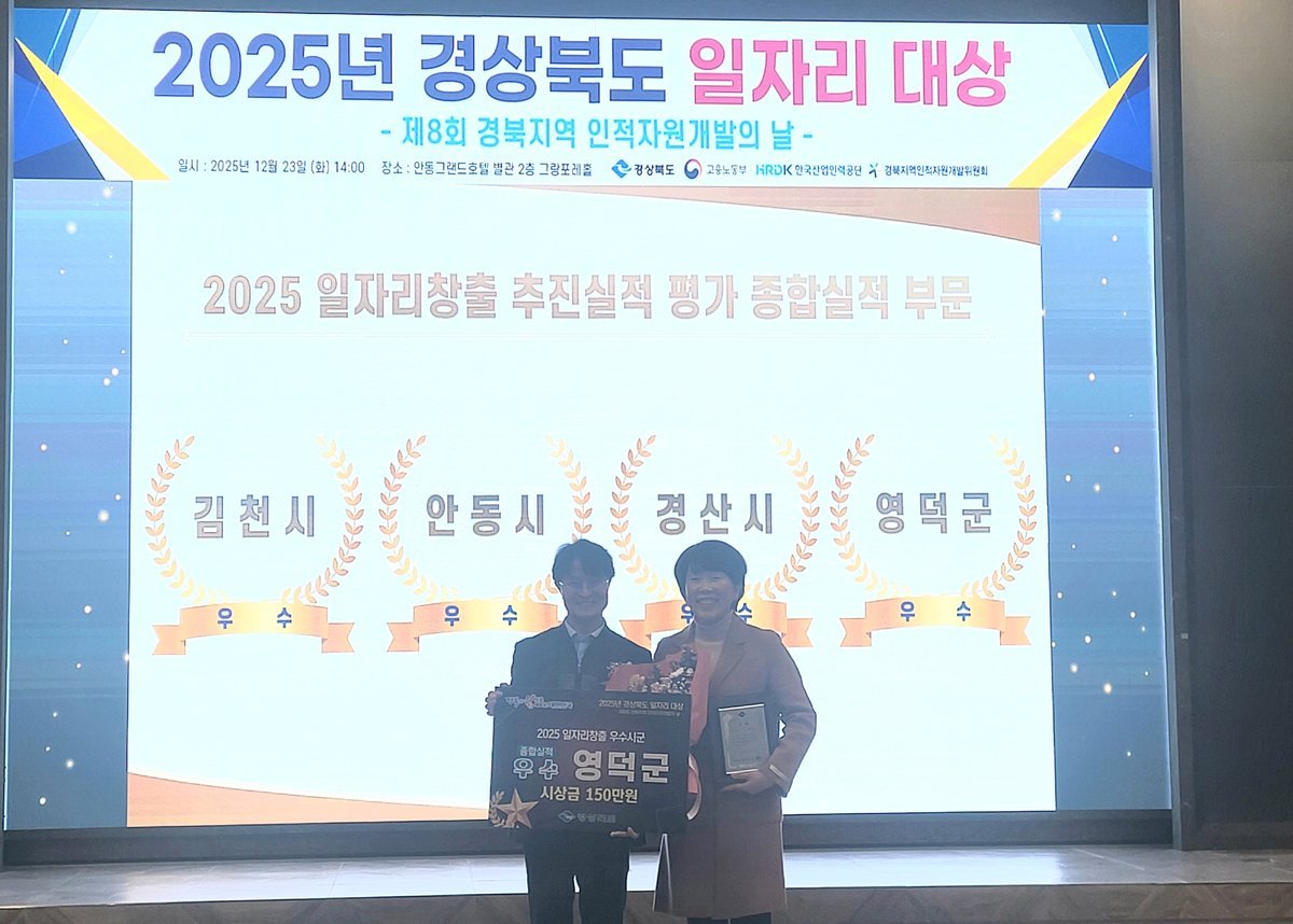 이에 더해 영덕군은 지난 9월 고용노동부가 주최한 ‘2025년 전국 지방자치단체 일자리 대상’에서도 공시제 부문 최우수상을 받아 이번 경상북도 일자리 창출 실적 평가에 이어 겹경사를 맞게 됐다.