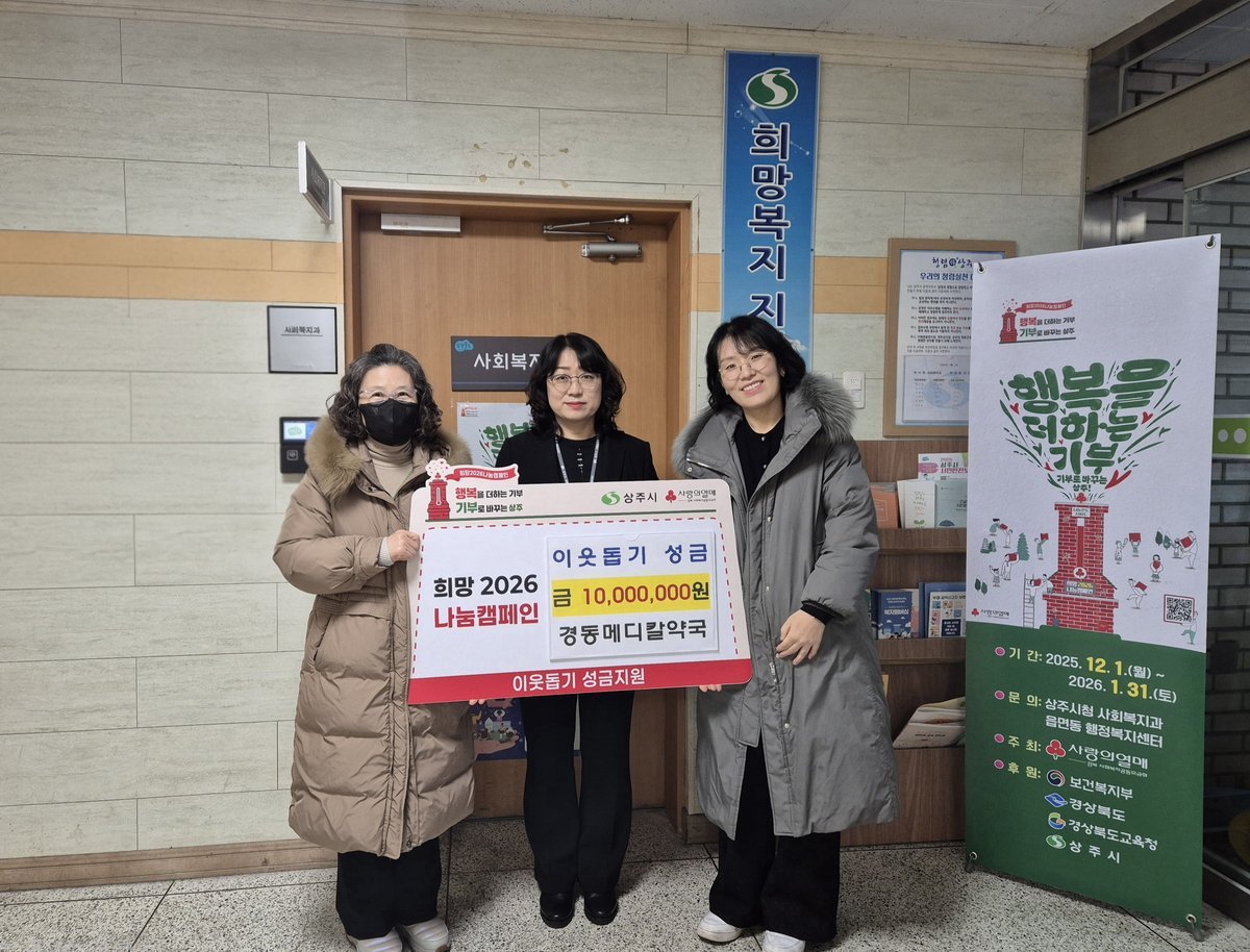 [한국Q뉴스] 상주 경동메디칼약국은 26일 상주시청 사회복지과를 방문하여 희망2026 나눔캠페인 성금 1000만원을 기탁했다.
