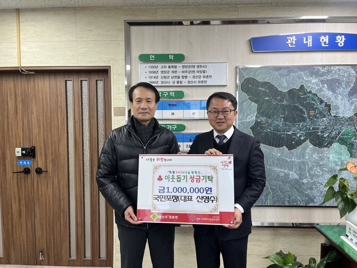 [한국Q뉴스] 와촌면「희망2026나눔캠페인」에 따뜻한 기부 릴레이가 이어지면서 연말 사랑의 온도가 뜨겁게 오르고 있다.