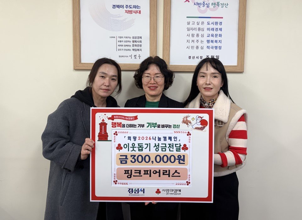 전현옥 복지정책과장은“연말을 맞아 이웃을 생각하며 나눔에 동참해 주신 핑크피어리스에 감사드린다”며“기탁된 성금은 경북사회복지공동모금회를 통해 관내 취약계층 지원에 소중히 사용하도록 하겠다”고 말했다.