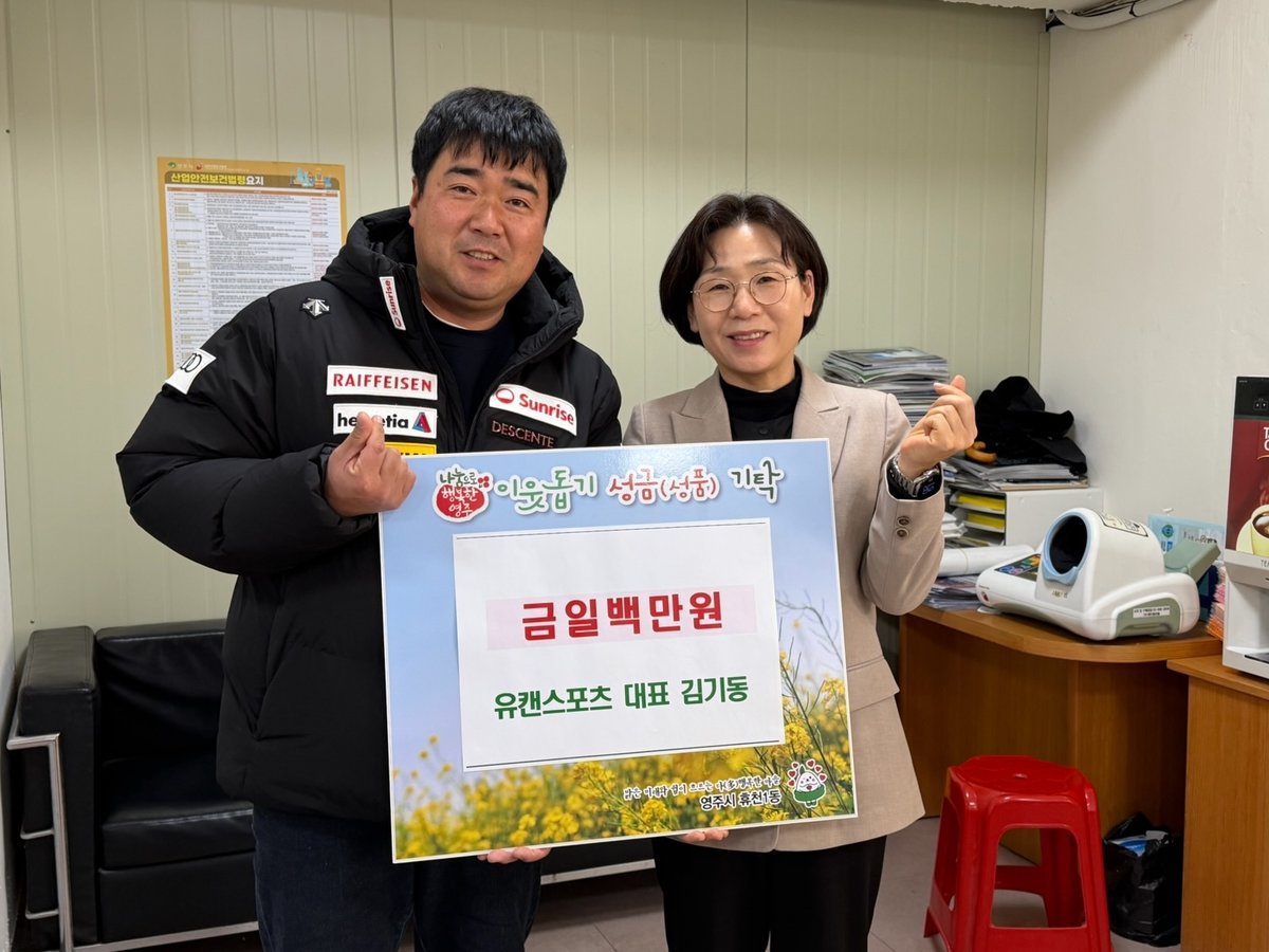 [한국Q뉴스] 영주시 소재 유캔스포츠는 지난 30일 휴천1동 지역사회보장협의체에 후원금 100만 원을 전달하며 지역사회 나눔 활동에 동참했다.
