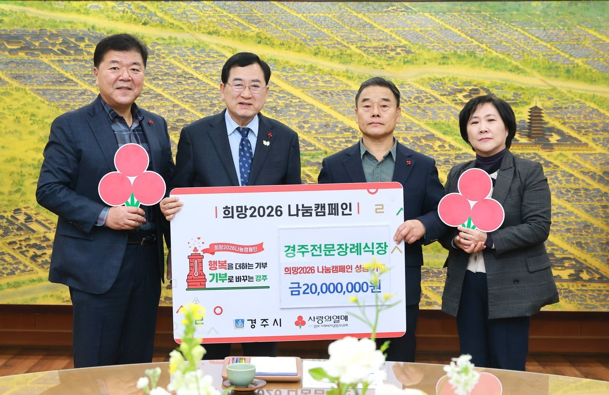 [한국Q뉴스] 경주전문장례식장은 ‘희망2026 나눔 캠페인’성금 2000만 원을 기탁했다고 1일 밝혔다.