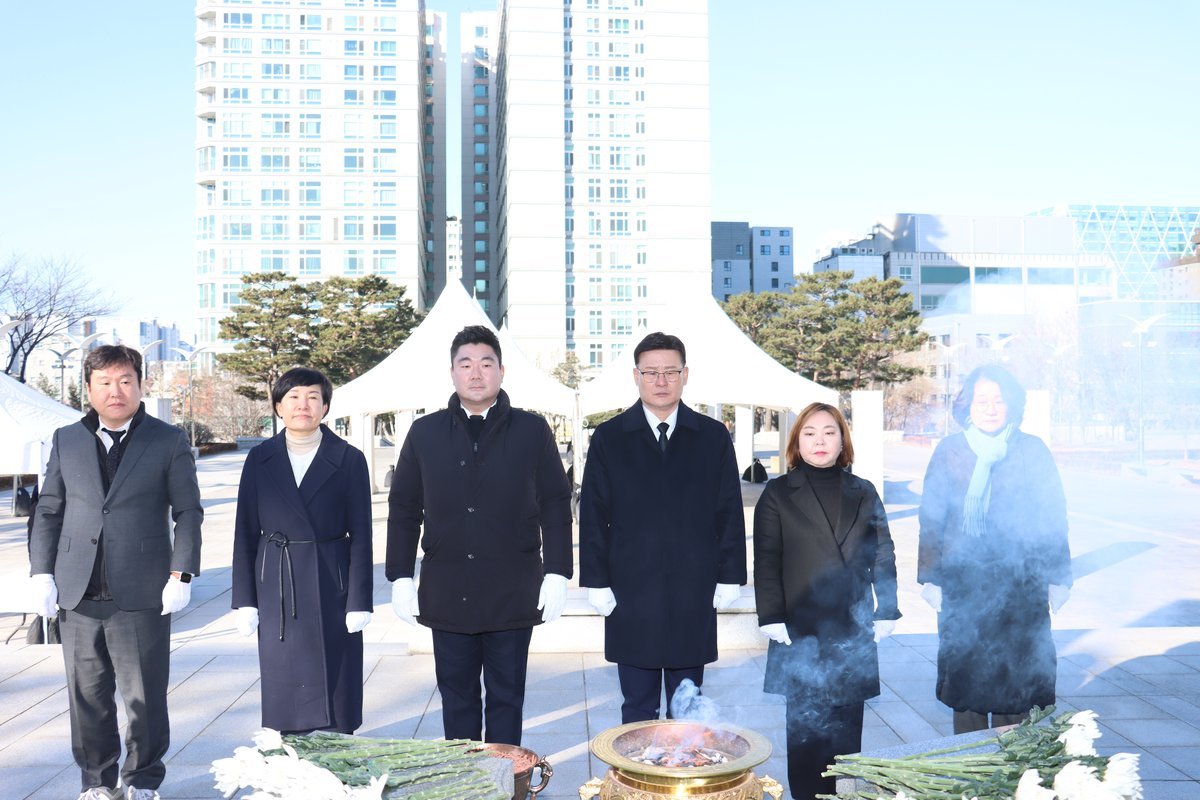 최종현 대표의원은 참배를 마친 후 방명록에 “민생을 최우선으로 살피는 경기도의회가 되겠습니다”고 적고 2026년 새해 다짐을 밝혔다.