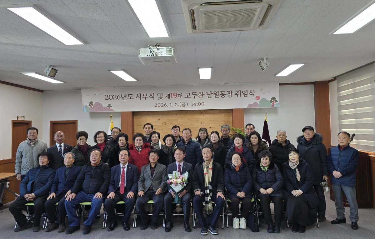 [한국Q뉴스] 상주시 남원동에서는 2026년 1월 2일 남원동 행정복지센터에서 동 직원과 관내 통장·단체장 등 50여 명이 참석한 가운데 제19대 고두환 남원동장의 취임을 축하하는 자리를 가졌다.