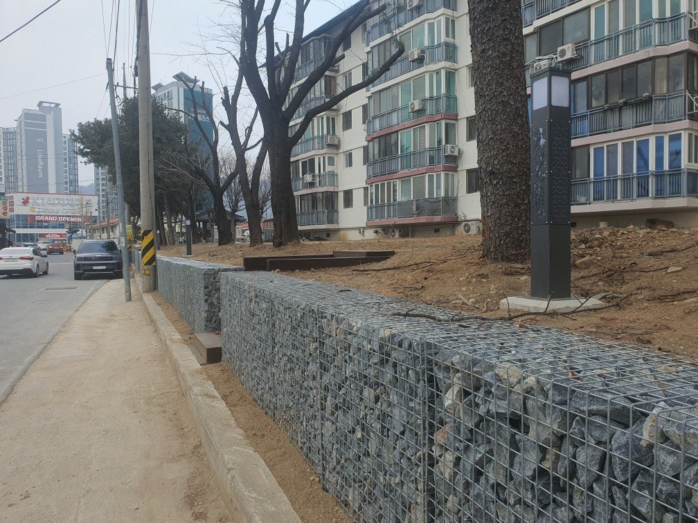 [한국Q뉴스] 상주시 계림동에서는 인근 통행에 지장을 주던 냉림2주공아파트 주변 수목 전지와 함께 미관을 해치던 울타리를 철거한 후 조경용 게비온과 계단데크, 경관조명을 설치하는 등 냉림2주공 일원 도시미관 개선사업을 시행하였다.