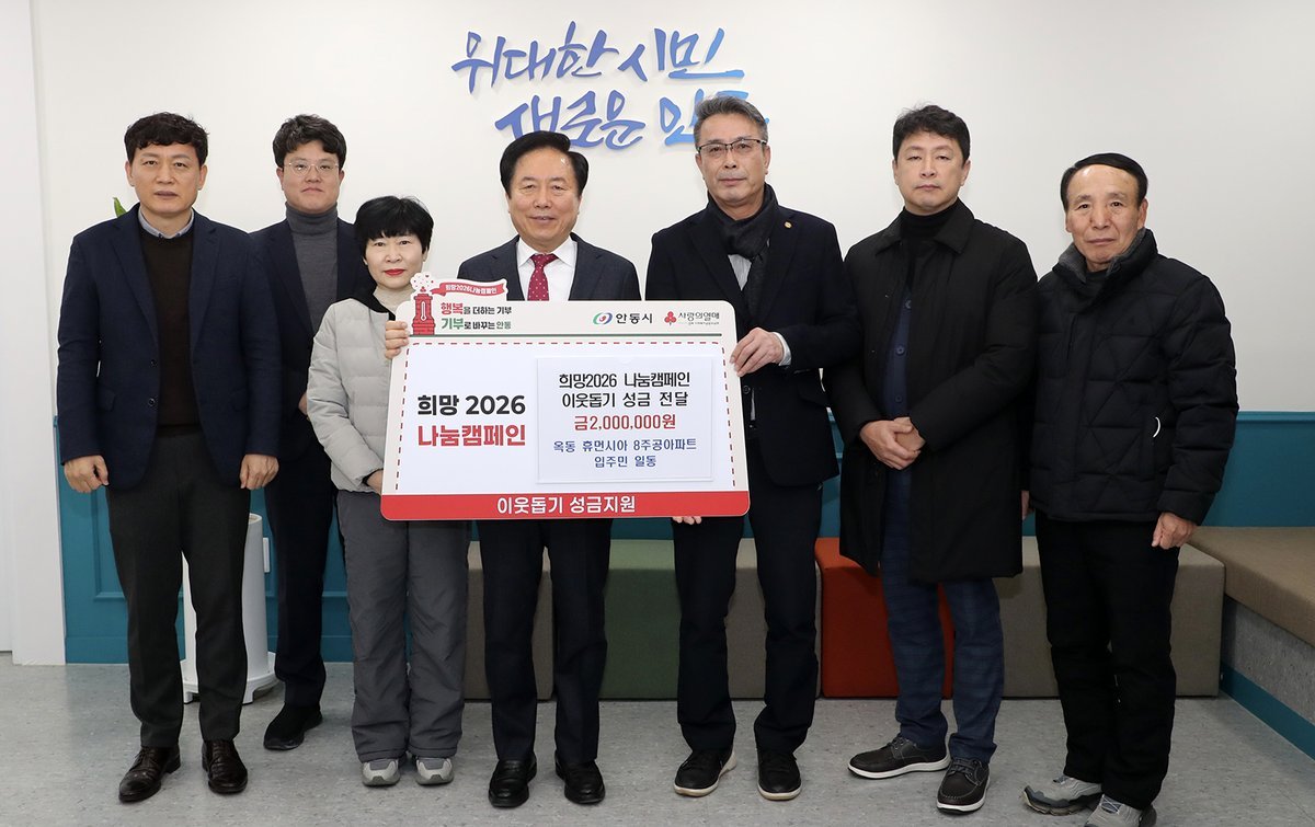 [한국Q뉴스] 안동시 옥동 휴먼시아 8단지 주민 일동은 저소득층 및 취약계층 대상자를 위로하고자 1월 7일 성금 2백만 원을 안동시에 기부했다.