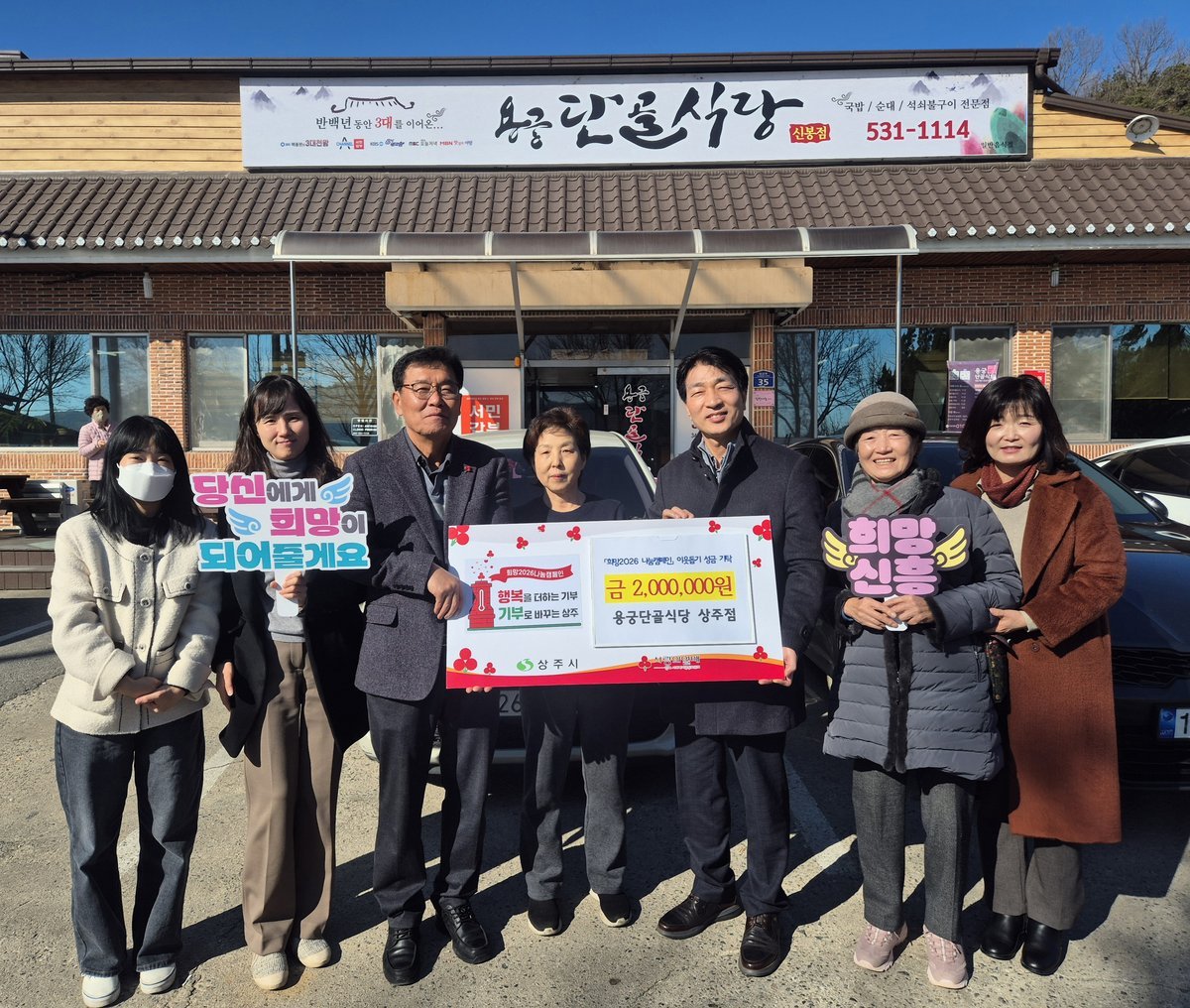 용궁단골식당 상주점 김정애 대표는 희망2026년 나눔캠페인 성금도 200만원 기탁하였으며, 이번에도 성금을 흔쾌히 쾌척하여 지역사회에 귀감이 되고 있다.