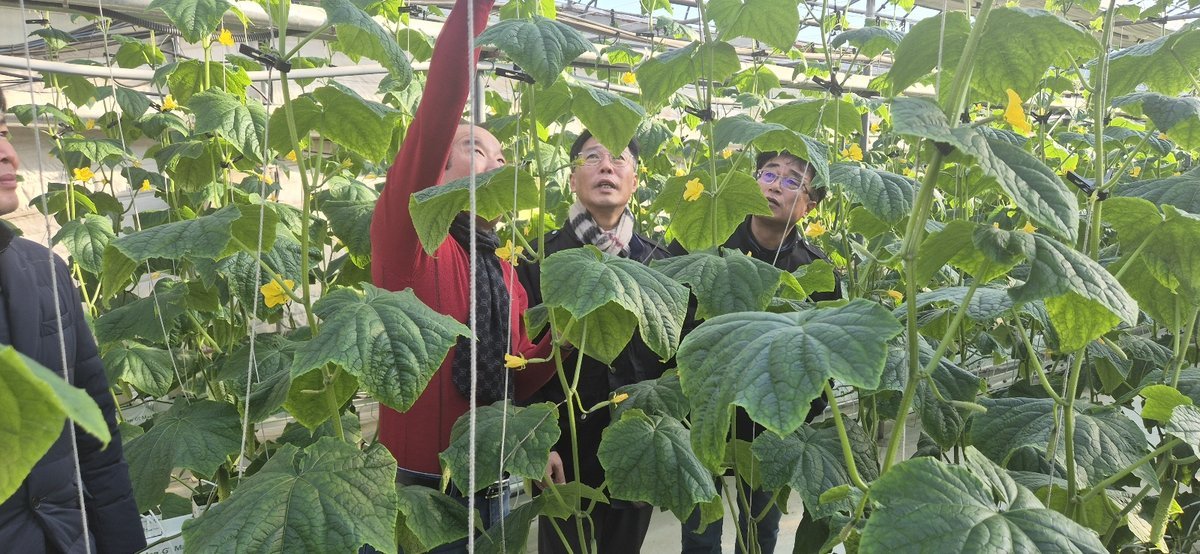 이번에 방문한 농가는 지역 최초로 오이 양액재배 기술을 도입한 농가로, 스마트온실에서 오이를 재배하고 있다.