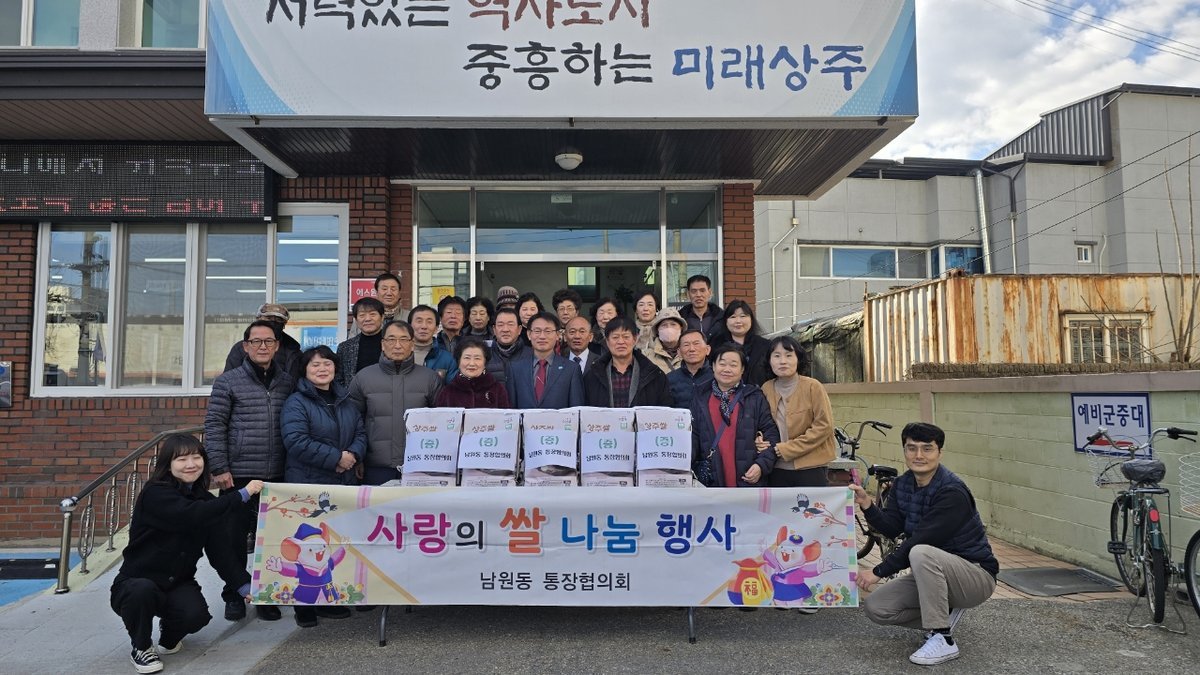 [한국Q뉴스] 상주시 남원동 통장협의회에서는 2025년 새해를 맞이하여 1월 9일 남원동행정복지센터 전정에서 백미 310kg을 관내 취약계층에 기부하였다.