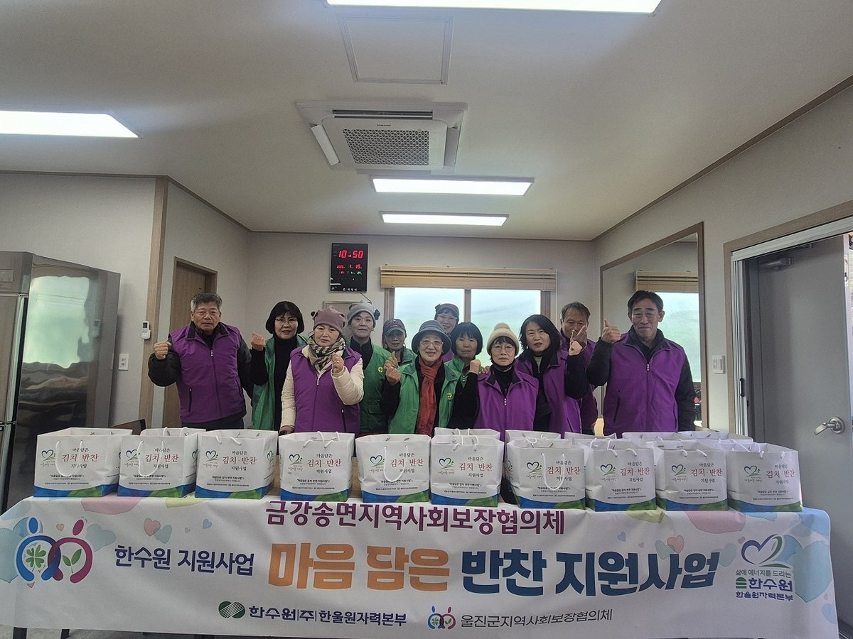 이번 달에는 금강송면새마을부녀회에서 겨울철 한파로 건강을 챙기기 어려운 취약계층 대상자들을 위해 소머리국, 우엉조림, 김치겉절이, 배추부침, 과일 등을 만들어 협의체위원, 새마을협의회원들이 각 가정의 안부확인을 하며 45가구에 전달했다.