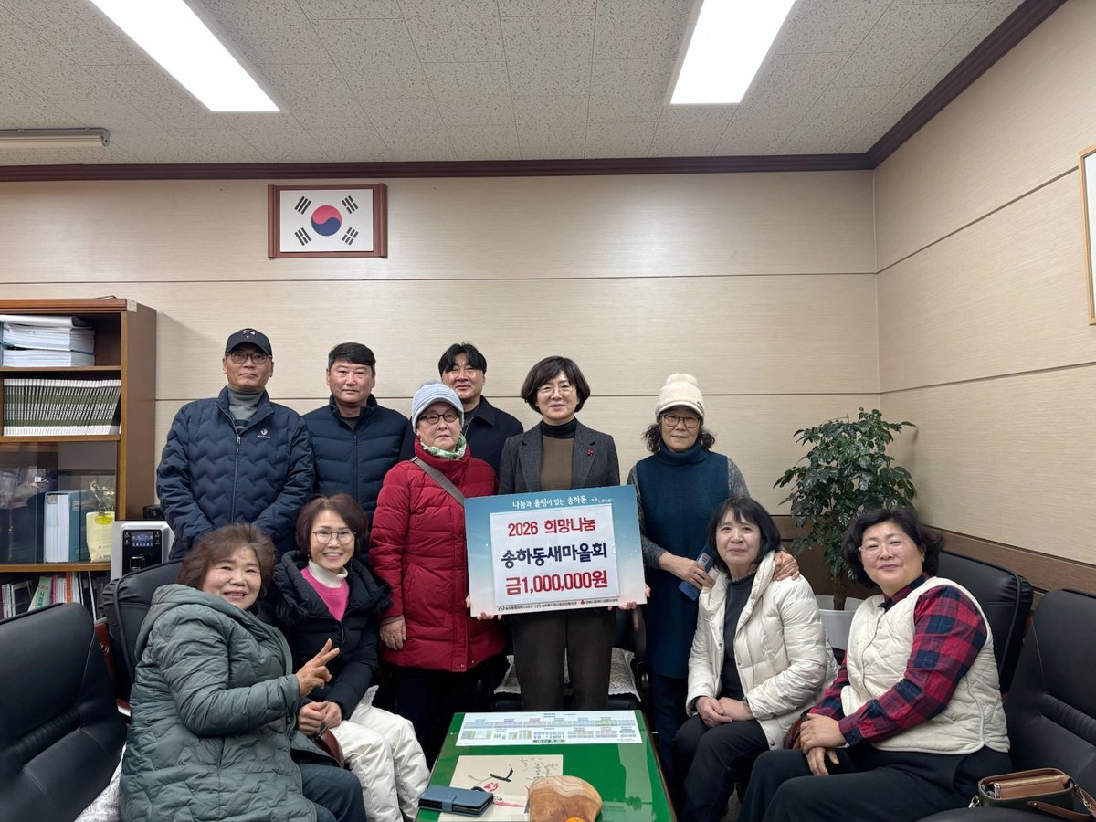 송하동 새마을협의회는 평소 취약계층 지원과 환경정화 활동 등 다양한 봉사를 통해 지역공동체 조성에 앞장서 왔으며 지난해에 이어 올해도 성금을 기탁하며 일회성이 아닌 지속적인 나눔을 실천해 지역사회의 귀감이 되고 있다.
